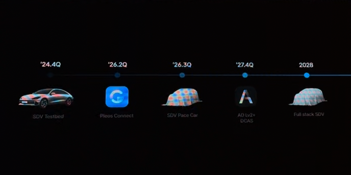 Pleos는 2026년 상반기부터 차량에 탑재 예정이며, Pleos에는 AI가 탑재되어 사용자의 맥락에 맞는 대답과 제안을 한다. 2027년에는 룰베이스가 아닌 레벨 2+의 자율주행을 목표로 하고 있다.